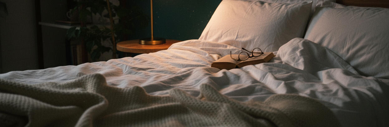 A calm wind-down cues your brain for sleep: light stretch, warm shower, quiet reading, low light.